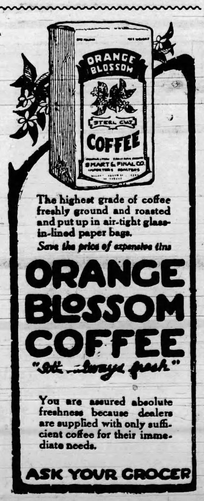 “Orange Blossom Coffee Advertisement.” South Pasadena Courier, February 21, 1922.
