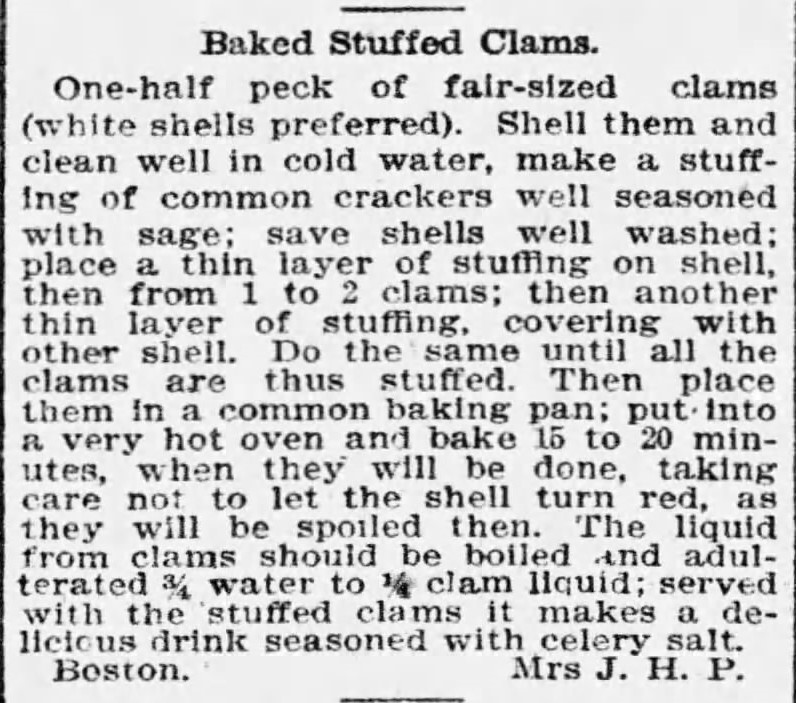 Baked Stuffed Clams, The Boston Globe (Boston, MA), March 27, 1895