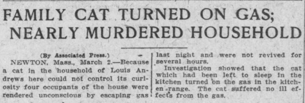Family Cat Turned On Gas, Atlanta Semi-Weekly Journal (Atlanta, GA), March 5, 1912