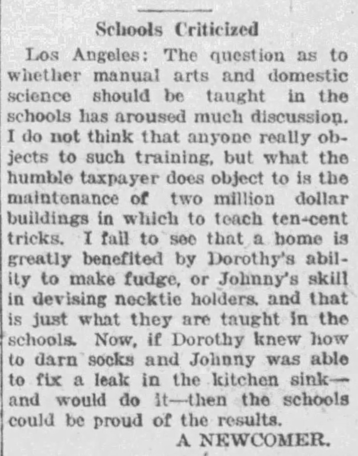 Schools Criticized, The Illustrated Daily News (Los Angeles, California), January 2, 1924