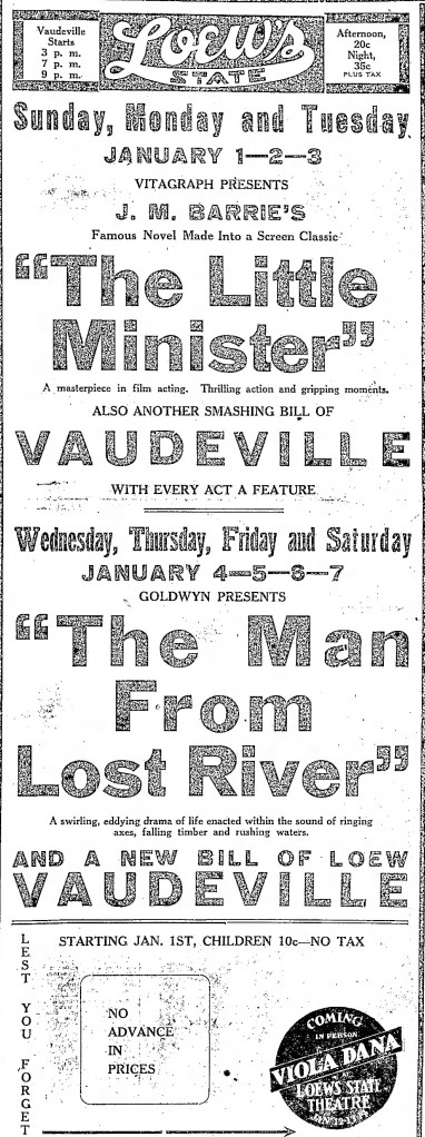 Loew’s State Listings, The Salt Lake Telegram (Salt Lake City, Utah), January 1, 1922