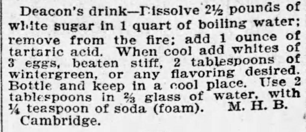 Deacon’s Drink Recipe, The Boston Globe (Boston, Massachusetts), October 16, 1895