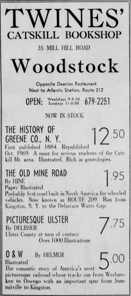 Twines’ Catskill Bookshop, The Kingston Daily Freeman (Kingston, New York), October 31, 1969