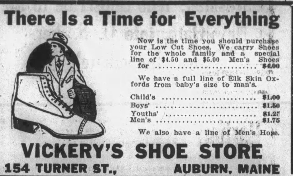 Pretty good prices for a pair of shoes, right? Until you account for inflation, that “whole family” offer of shoes for $5.00 in 1916 would be $139.16 in 2023. Enough to make your pocketbook say “ouch”.