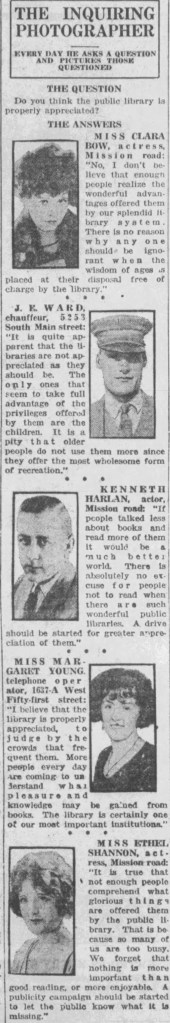 The Inquiring Photographer, The Illustrated Daily News (Los Angeles, California), January 11, 1924
