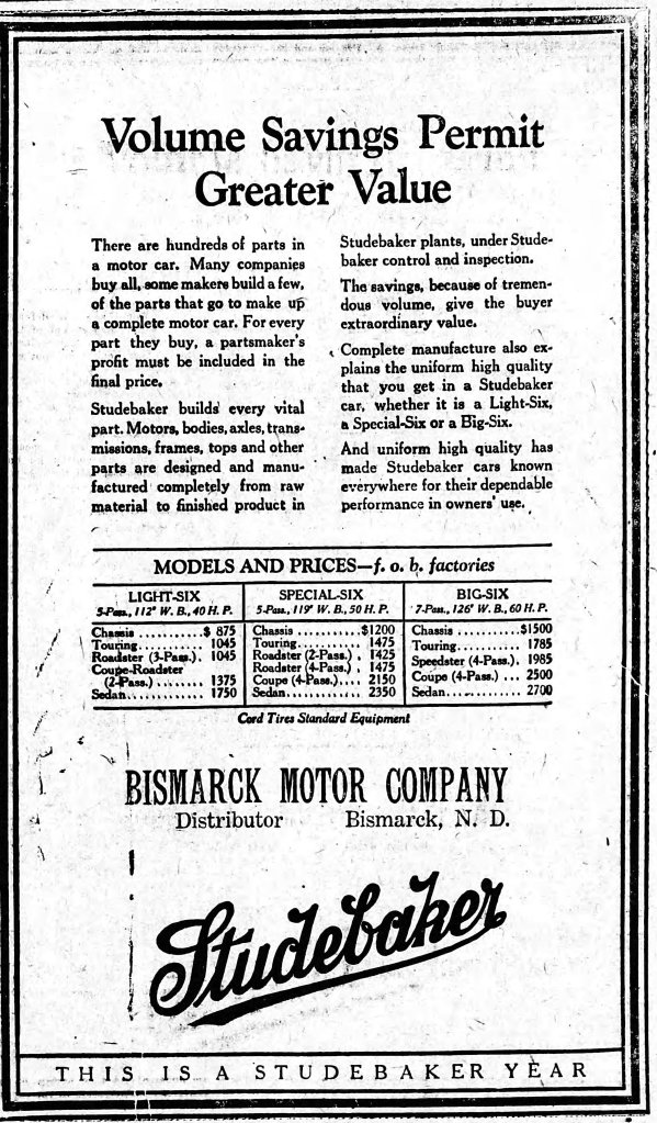 Volume Savings Permit Greater Value, The Bismarck Tribune (Bismarck, North Dakota), July 20, 1922
