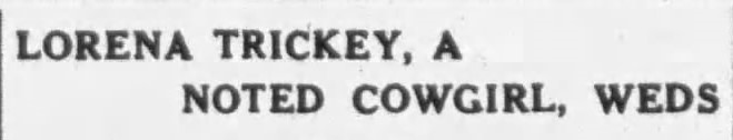 Lorena Trickey, A Noted Cowgirl, Weds, The Western Nebraska Observer (Kimball, Nebraska), August 30, 1928