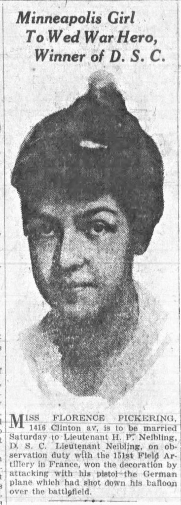 Then a war hero won her heart. It’s uncertain if Florence knew H.P. Neibling before he served in WWI, but it is known that during his service he earned the Distinguished Service Cross, the story of how he earned it it it briefly noted in the above article.