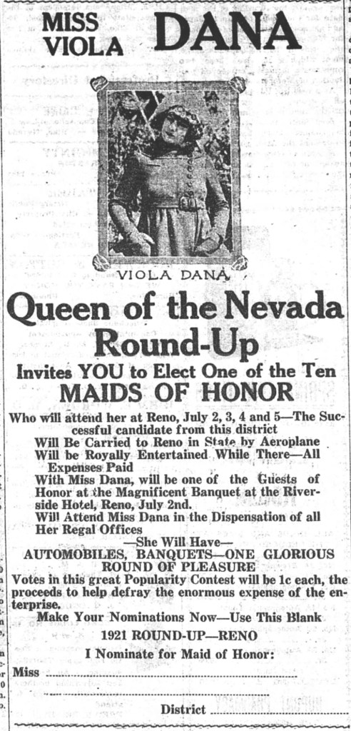Miss Viola Dana: Queen of the Nevada Round-Up, The Elko Independent (Elko, Nevada), June 11, 1921