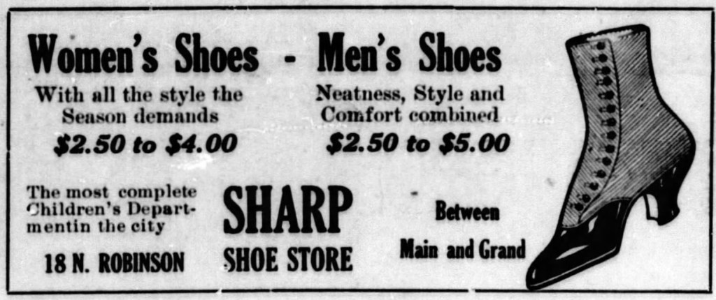 Sharp Shoe Store Advertisement, Oklahoma City Town Topics (Oklahoma City, Oklahoma), November 28, 1914