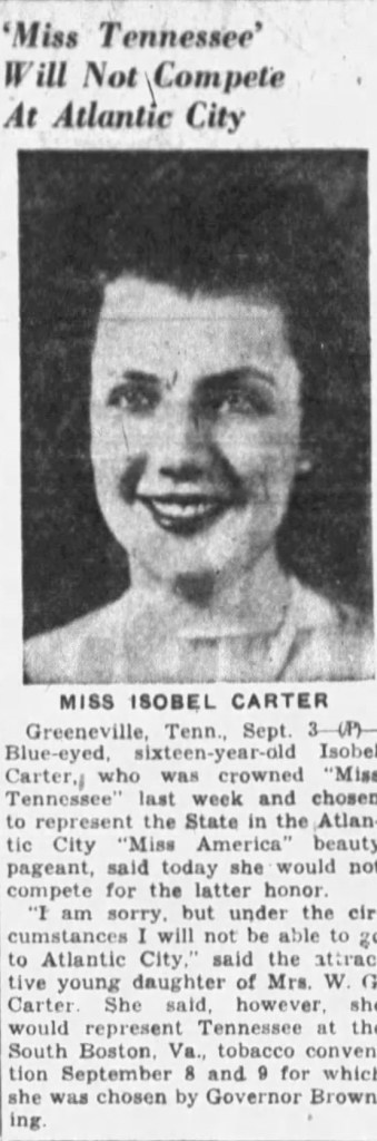 ‘Miss Tennessee’ Will Not Compete In Atlantic City, Nashville Banner (Nashville, Tennessee), September 3, 1938