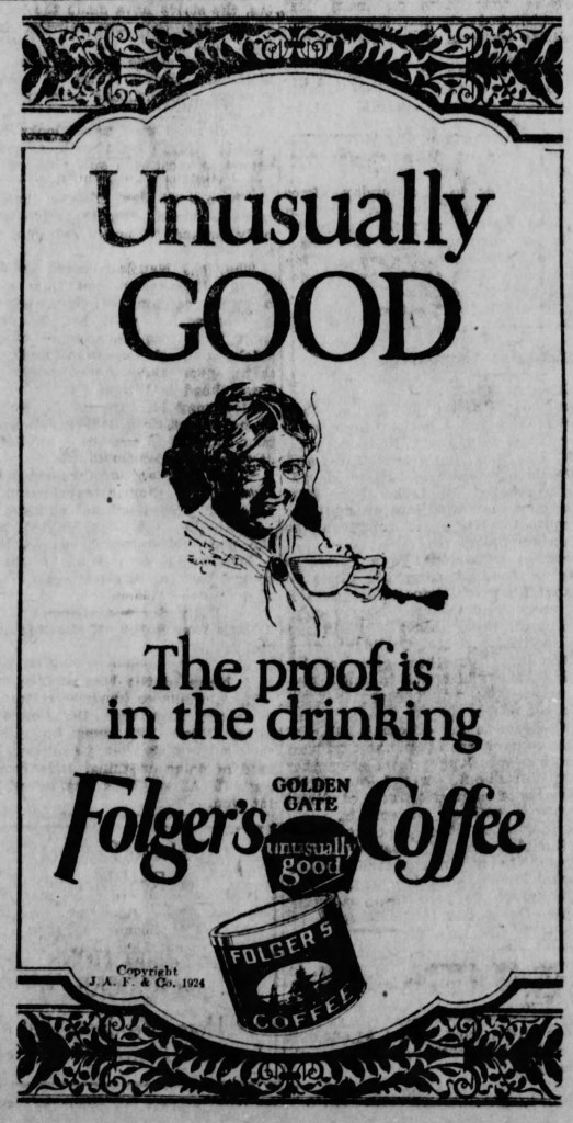 Folger’s Coffee Advertisement, The Alaska Daily Empire (Juneau, Alaska), August 8, 1924