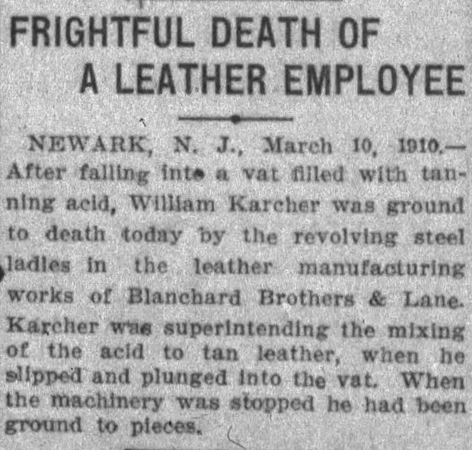 Frightful Death of a Leather Employee, The Daily Evening Item (Lynn, Massachusetts), March 10, 1910