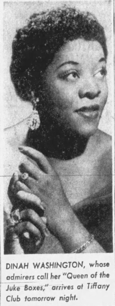Dinah Washington Advertisement, The Mirror-News (Los Angeles, California), April 14, 1955