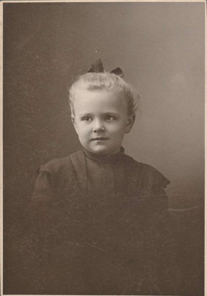 So, Gertrude’s name is written on the back of this photograph, but no last name is given. Also on the back of the photo is the name of the photographer’s studio: Brigden in Cleveland, Ohio. At the very least, we know that Gertrude visited Cleveland once. No date is given, but this photograph looks like it probably came from the late Victorian Era (1870-1901). What do you think?
