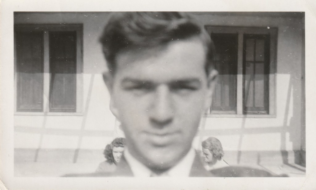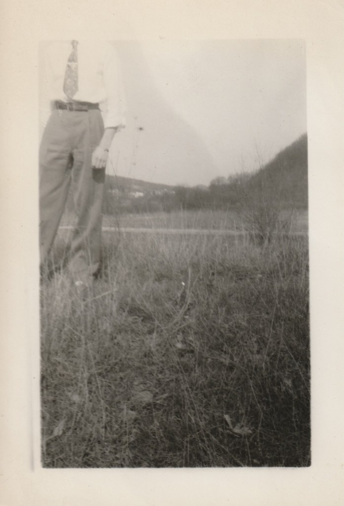 We all have some of these, most likely these days on our cell phones. That awkward moment when the camera slips and takes a picture or just fumbling with the camera and it accidently takes a photograph. Unfortunately, there is nothing written on the back to identify anything about this photo, therefore we will most likely never know the man (partial), location or date of this photograph. Regarding the date though, we think it was probably taken between 1940 and 1960. But it’s still kind of cool to see that photographers in the past had some “unusable” photographs too.
