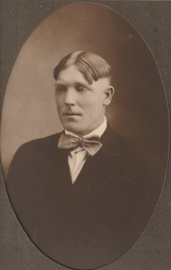 First of all, this photograph was probably taken in the first 25 years of the 20th century. That “severe hair part” and bowl cut is still seen in modern times, especially in the 1990s. It’s truly unfortunate that the date, location, and the name of the man are not written on the back of this photograph. And for the bowtie fans out there, it is quite, well, large.