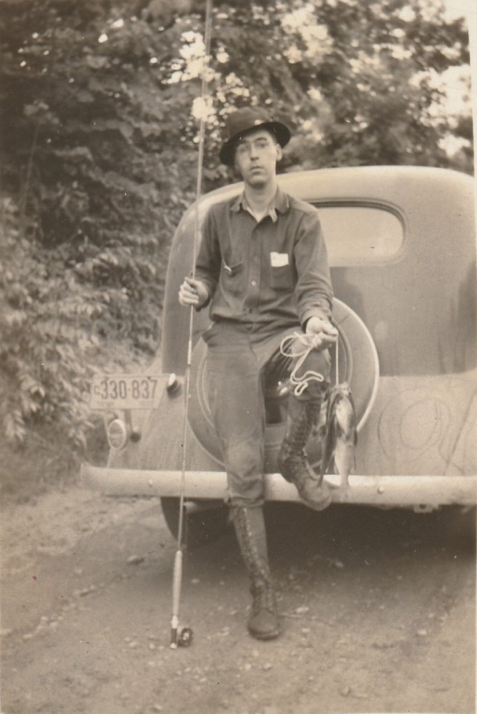The best case scenario for going fishing is catching at least one fish. Kind of the reason, right? This particular fisherman was successful. As there is nothing written on the back of this photo, the man is unidentified, but the clothing, car, and license plate style (although partially unreadable) seem to point towards sometime between the 1940s and 1950s. The location is probably lost in time, but the successful fly fisherman got to eat that night, so that’s good.